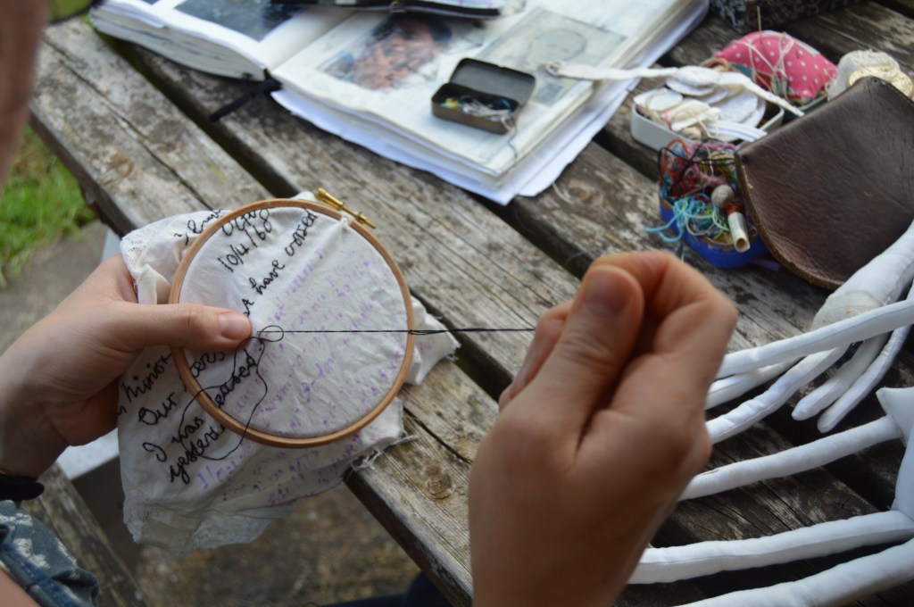 Home The repetitive notion of hand stitching is mindful and meditative allowing a connection with material, hand and thought.
